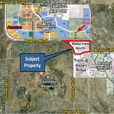 Waterview North is an approximately 10-acre parcel located just south of the Colorado Springs Airport & Peak Innovation Park. Located at the northeast corner of Powers Boulevard and Bradley Road just south of the Colorado Springs airport and Peak Innovation Park.